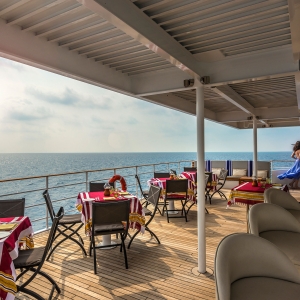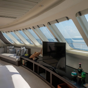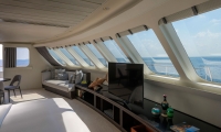 Indoor bar feature cosy sofas adjacent to a relaxing lounge area, while a second, outdoor bar on the sheltered, lower sundeck gives you a front-row seat to the breathtaking sunsets.