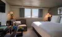 Curl up on the sofa with a drink from your private bar to enjoy a movie after an exciting day, or lie back on the bed and watch the stars twinkle over the ocean from your cabin’s large, port windows in these bright and airy State Rooms