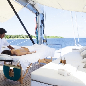 The onboard therapist offers a wide range of treatments and personalised wellness activities. Each holistic therapy presents an exhilarating sensory journey whilst at sea or on a secluded stretch of island. A private sunset massage on the sandbank, invigorating early morning Tai Chi or yoga on the deck; the possibilities are endless.