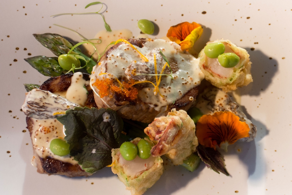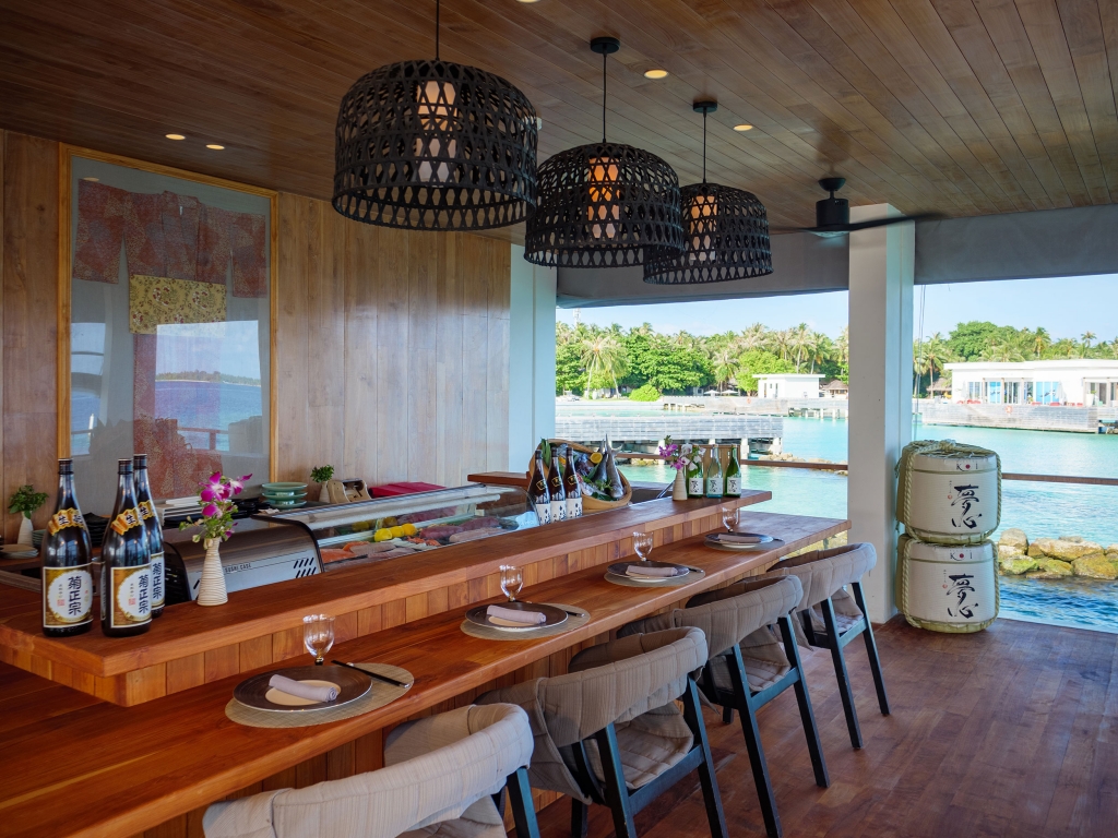 Tables poised on the over-water deck in prime position for you to watch fish dart by while you discover Japanese cuisine including an array of fresh sushi and sashimi.