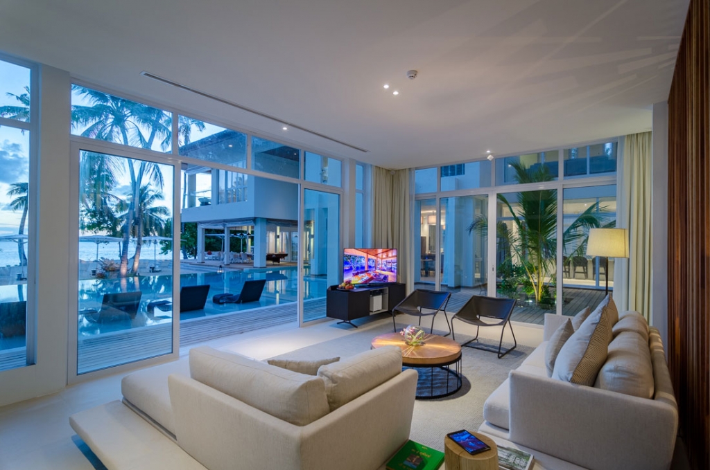 This Miami-stye paeon to contemporary architecture is the largest of the hyper-luxury Amilla Beach Villa Residences. It is perfect for multiple families and large groups of friends who seek palatial space for entertaining without compromising personal privacy. In keeping with its name, this residence is great in so many ways – outrageously super-sized living rooms, immense master bedrooms and supremely comfortable guest suites, kitchen and bar with every conceivable gadget and gizmo, two pools and sun terraces, and myriad extras including gym equipment, table tennis, pool table, and PlayStation 4.