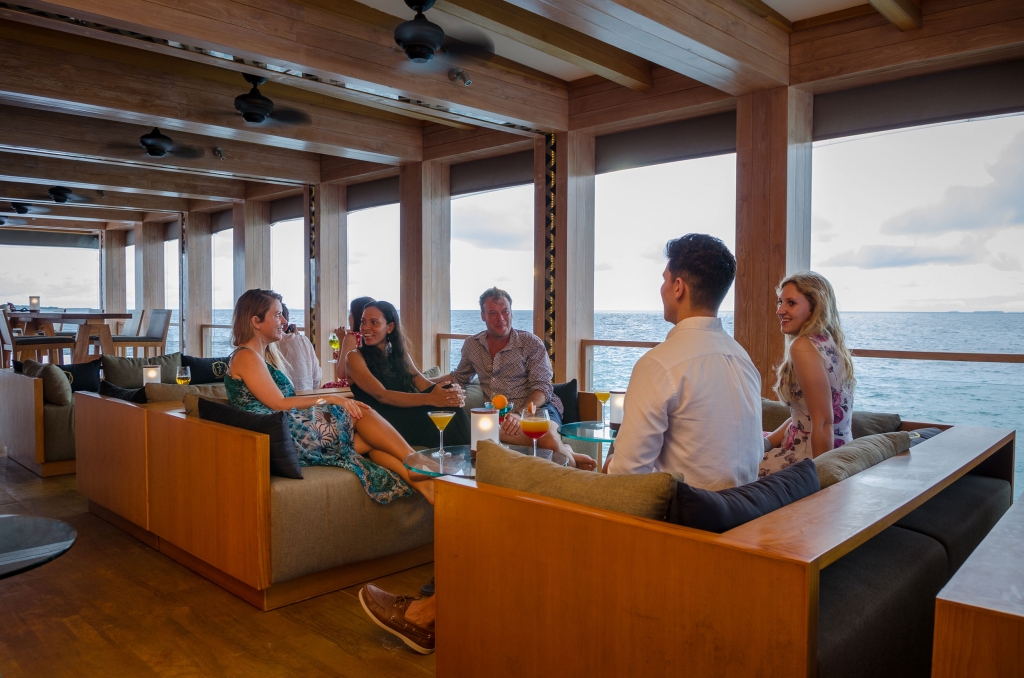 Crafted cocktails, fine wine and chilled beer beckon on the sandy beach. Spirits infused with ingredients grown on the island. The island's DJ standing by to play laid-back beats as the sun casts its last golden light on the tranquil waters of the lagoon.
