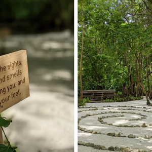 interwoven with verdant walking trails and white sand beaches unspoiled by construction.