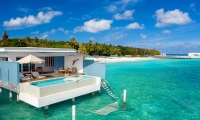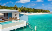 Gaze out across the reef from the comfort of your bed, or dangle your feet from your balcony and watch fish dart through the water below. Perfect for snorkelers, these Maldives water villas are suspended right over the kaleidoscope fish. Private access to slide into the embrace of the ocean.