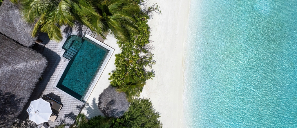 A private beach garden, a shaded pool beneath tropical trees – Baros Pool Villas provide peaceful repose within steps of the lagoon. On your deck you've got a canopied daybed and sun loungers, where days can be spent bathed in ocean views. White sands, turquoise waters and the wonders of the house reef are just metres away. Inside, spaces that envelope with effortless charm – a comfortable bed, rich wooden furnishings and bespoke Baros amenities.