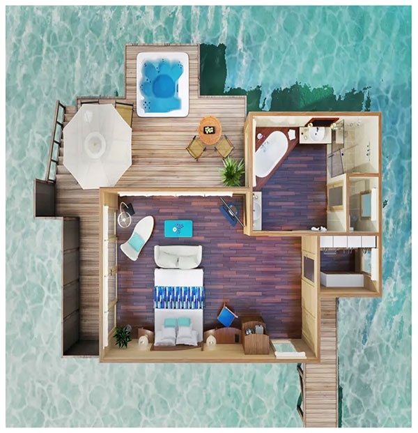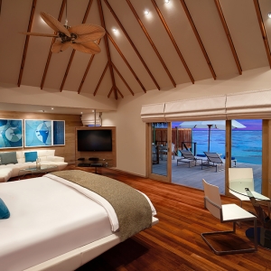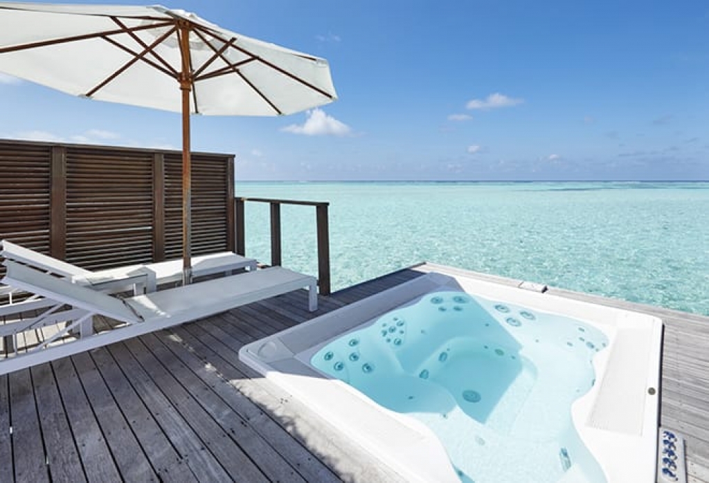 Your superior water villa features a whirlpool on the sundeck and a luxurious king size bed which directly faces the ocean – ready for those extraordinary Maldivian sunsets.