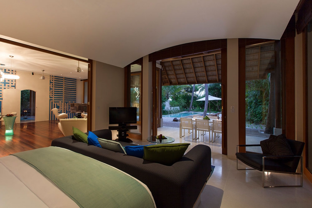 Located 100 meters off the tip of the main island, this spacious villa offers the ultimate seclusion with whirlpool and steps leading into the Indian Ocean.