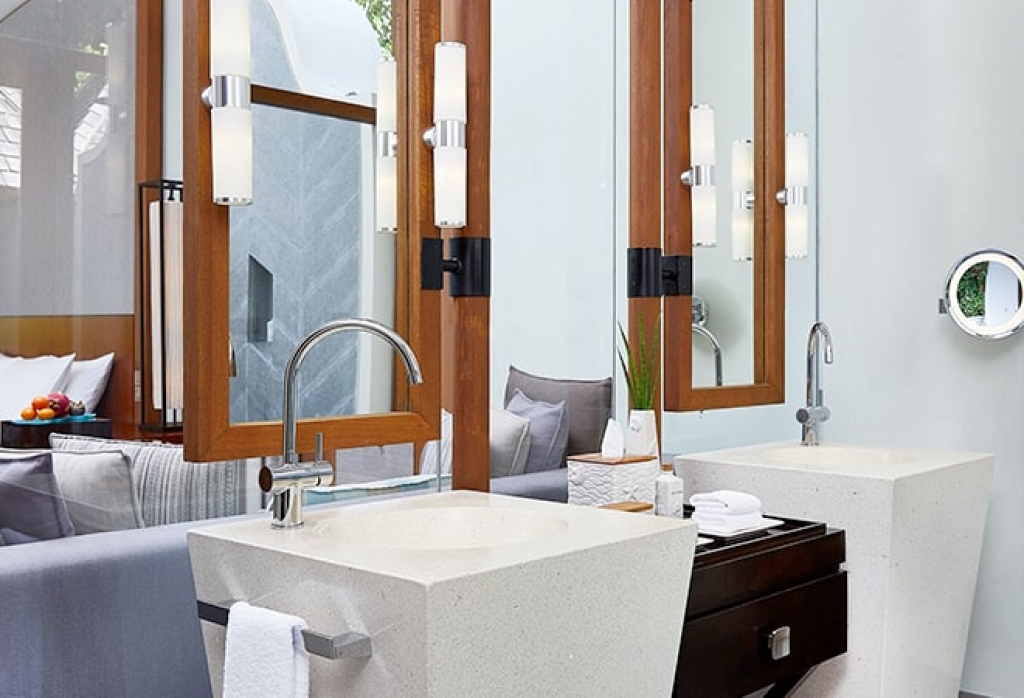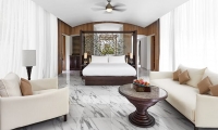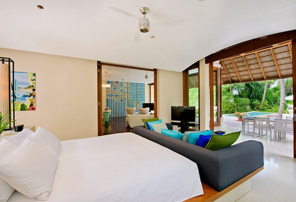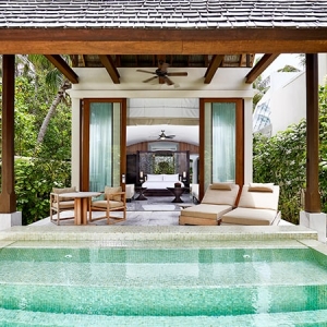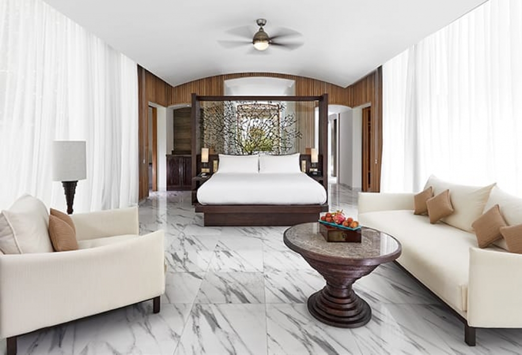 With sunset views, and a private deck with whirlpool and steps leading into the Indian Ocean, this spacious villa is the perfect hideaway. Benefits include a luxury bathroom with ocean-facing tub.