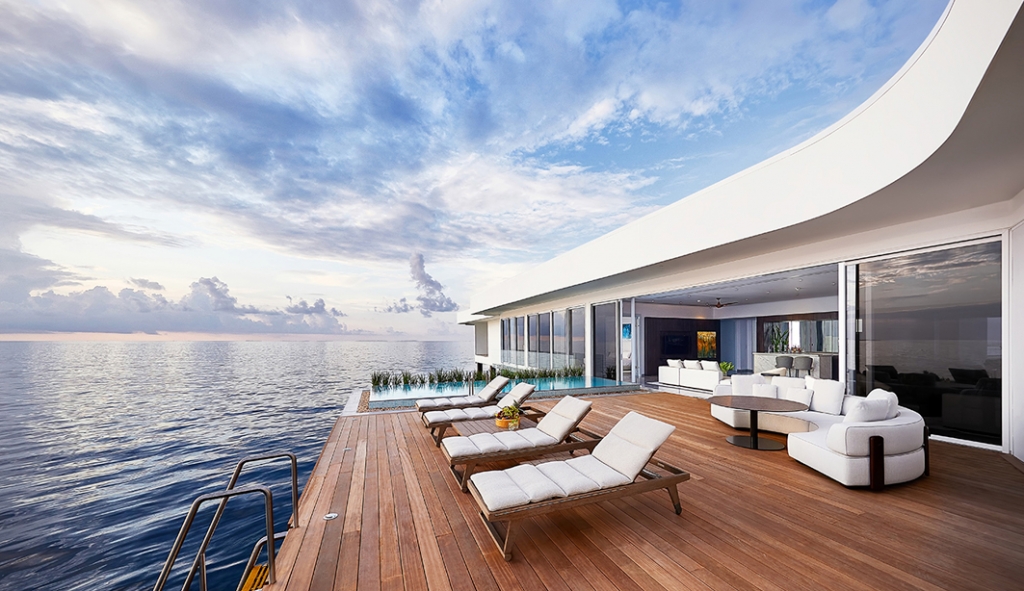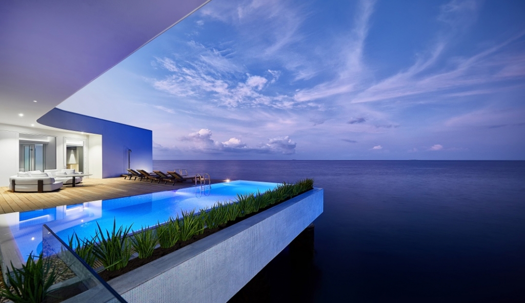 The Upper Level: Above water, enjoy living and dining areas fitting of one of the world’s most exclusive residences.