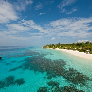 Set 100 meters off the tip of the main island, this spacious villa offers two separate bedrooms. Benefits include a sundeck featuring a whirlpool and steps leading directly into the Indian Ocean.