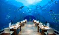 Dine five meters below the surface of the ocean, in the world’s first undersea restaurant, with panoramic coral garden views and fusion menus matched with fine wines. Ithaa can be reserved for private dining, weddings and special occasions.