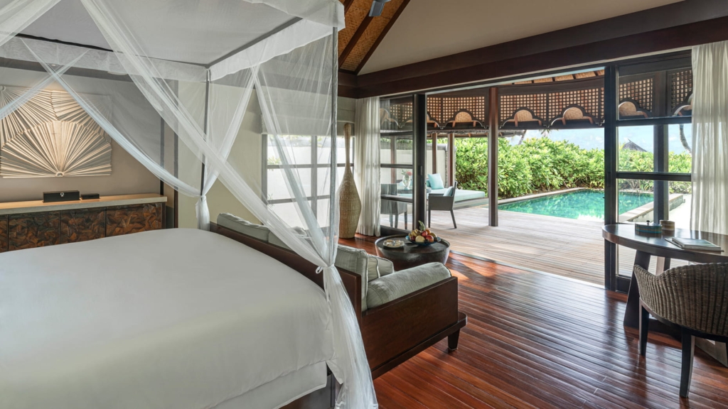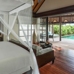 Space, privacy and an ocean of possibilities are at your fingertips. Retreat to the far end of the water villas jetty for this one-of-a-kind haven, or lounge in overwater nets by the pool. Savour evening tranquillity with separate sleeping areas before sunrise snorkelling adventures in your own private lagoon.