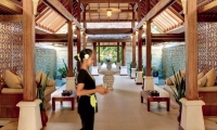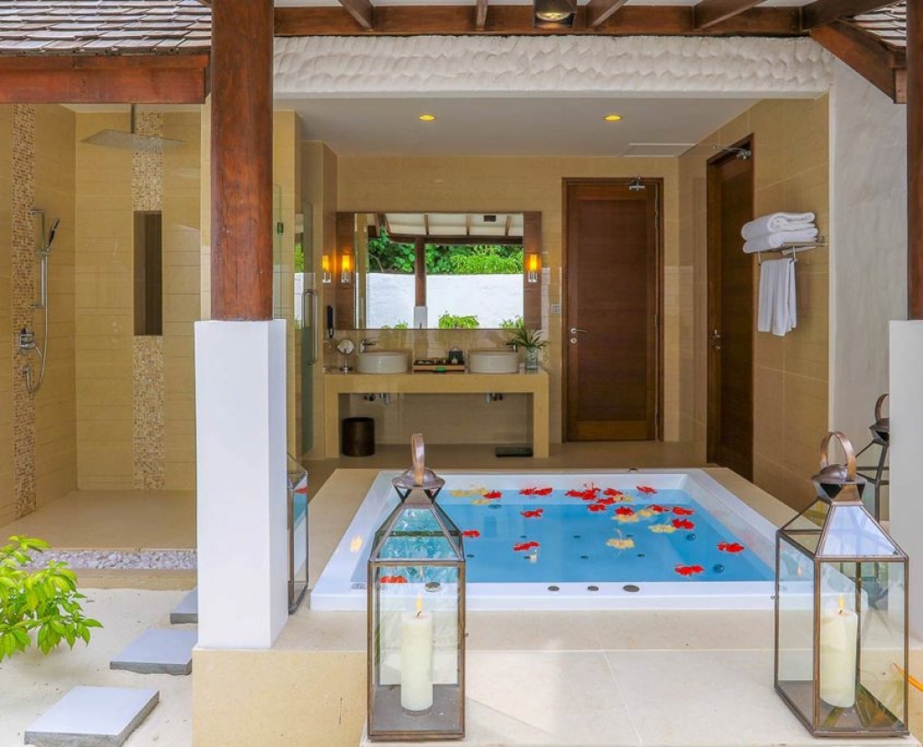Spellbinding surroundings and heavenly treatments honor the harmony of mind, body and soul at Hideaway Spa. With its design influenced by the breathtaking natural beauty of the Maldives, sand, sun and sea themes echo throughout internal waterways and water walls, open areas and sandy floors. The delicate combination of coconut and teak timber furnishing, sukabumi stone, java rosso tumble stone, sandstone, pink slate, onyx and silk fabrics offer a journey for the senses.
