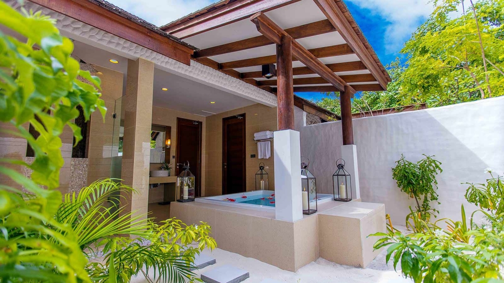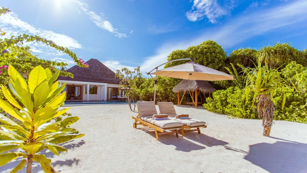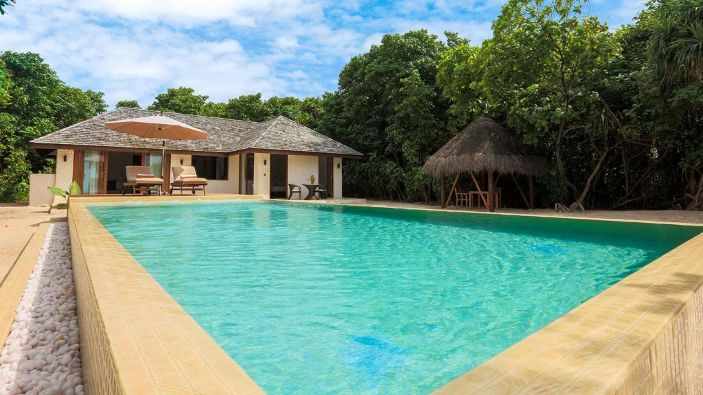 The Deluxe Beach Residence with Pool is a homely beachfront bolt-hole – the perfect luxury villa setting for a romantic escape to the Maldives.