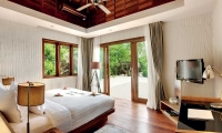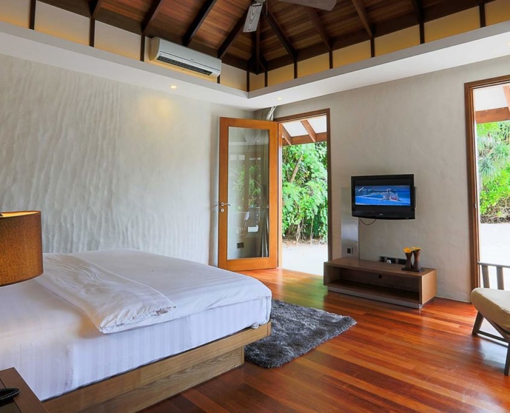 Its private stretch of white sand beach is accessed directly from both the airy and spacious bedroom and living room.