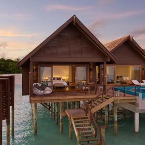 Set on a crescent-shaped private island, this incredible resort offers a choice of private villas or private villas with pools for its guests to unwind and enjoy a home away from home. Beachside or over the water villas and the associated privacy levels offered are the hallmark of this award winning destination, which boasts some of the largest beachfront villas in the Maldives.