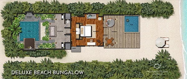 Exquisite Beach Bungalows line a pristine lagoon. From the daybed on your sumptuous deck, you can survey the beach as you warm your skin in the sun’s rays. From the plunge pool or the oversized bathtub, you can take in views of the lagoon.
