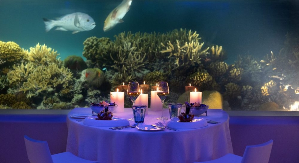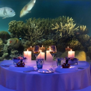 Welcome to the world’s only private underwater dining venue. Indulge in a bespoke dining experience like no other. Dine eight metres below the ocean, a romantic table positioned with uninterrupted views of the marine life before you and savor the culinary delights in this intimate and awe inspiring setting.