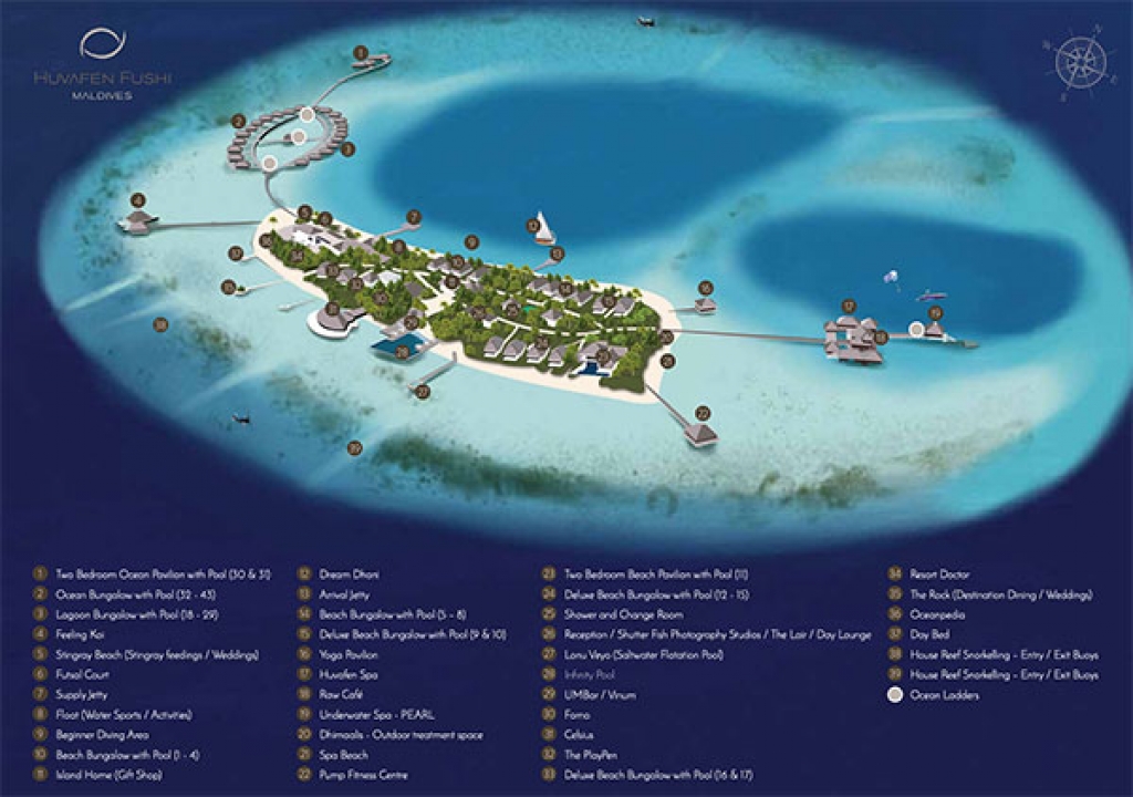 With 44 private bungalows nestled on a jewel of an island, tuned to the rhythm of sophisticated laid-back luxury encased amidst Maldivian flair, Huvafen Fushi proudly sets new bounds for a truly exceptional retreat. Iconic originality sets it apart from the norm, unique experiences aplenty waiting to be discovered in your home away from home. From the enchanted supremacy of the world’s first and only underwater spa to the cool depths of the underground wine cellar, paired with unsurpassed levels of service.