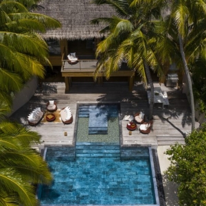 This 330sqm pool residence is a private palace. Bedrooms with balconies and views of the turquoise sea. A library stocked with the New York Times bestsellers. Every indulgent amenity, every wish answered by Huvafen Fushi.