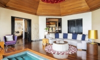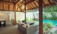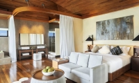 A freshwater infinity pool beckons from your private terrace. Another is sequestered away with the private bath. Total discretion is yours. As you’re drawn in to the villa, time stops. Plush furnishings beckon. The soft glow of a plasma screen illuminates your room. This is your refuge, your sojourn into fantasy.