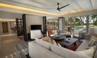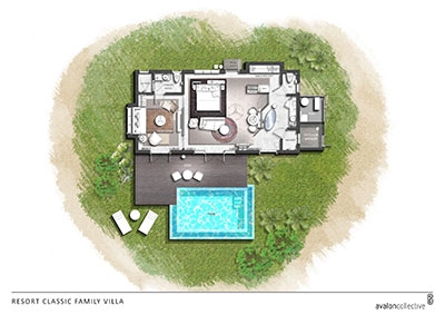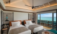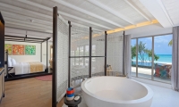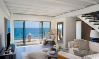 Perfect for couples travelling together or families with older children, these 2 west-facing family beachside villas feature two separate bedrooms with one king bed and one sofa bed, two bathrooms, outdoor shower, spacious living area with pantry and powder room, two sundecks and a private infinity pool.