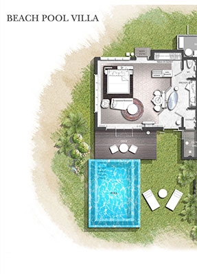 Set amid lush greenery, our 14 Beach Pool Villas offer king bedding, an open-plan bathroom, outdoor shower, a private pool, sundeck and al fresco dining area to relax and unwind as you take in the breathtaking views of the beach, ocean and beyond.