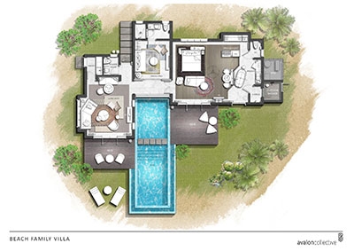 Steps away from beach and the Planet Trekkers Kid’ Club, the 3 Family Beach Pool Villas are an ideal haven