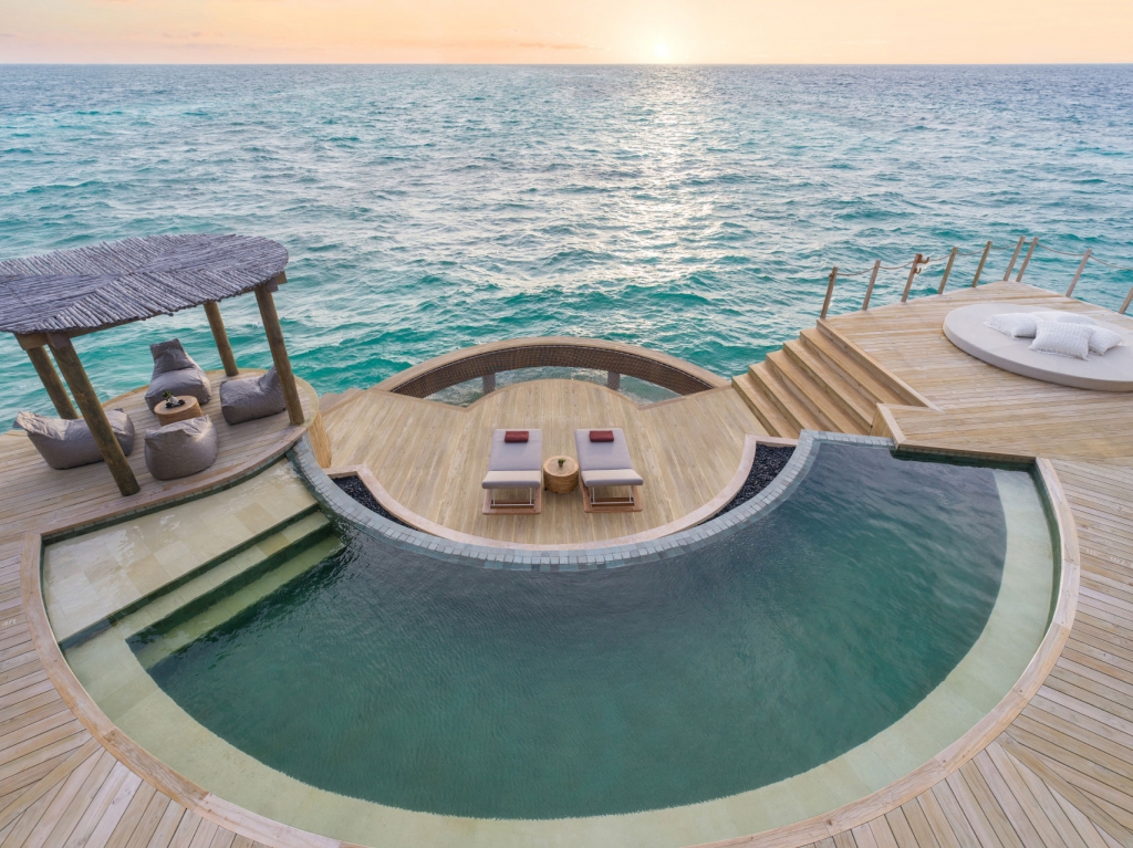 Awaken your senses in one of our 11 enviable overwater villas offering unobstructed views of the ocean from your bed, bathtub or pool. Featuring one king bed, open-plan bathroom, private infinity pool flanked by cushioned daybed and an open-air dining space.