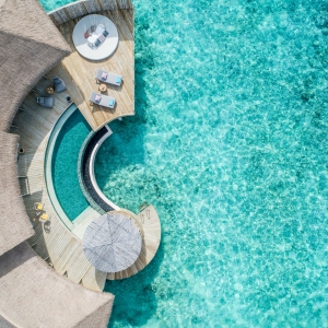 Located over crystal clear waters offering panoramic views of the Indian Ocean, this two-storey overwater residence is the perfect choice for families with older children or group of friends traveling together.