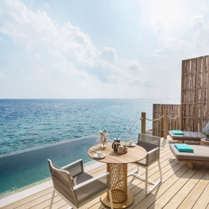 Take in sweeping views of the blue ocean, these 2 overwater villas open up to an expansive outdoor deck to soak up the sun and steps that lead directly into the sea; perfect for couples or friends traveling together.