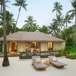 Escape reality to your own private beach retreat showcasing stylish contemporary Maldivian design with luxurious comfort.