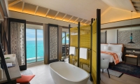 Spread over two floors of stylish contemporary Maldivian aesthetics offering luxurious comfort and best sunset view from the sundeck and infinity plunge pool, these11 stunning villas feature an elevated master bedroom with one king bed, open-plan bathroom with separate shower and bathtub, spacious living area with powder room, outdoor shower and a terrace and balcony overlooking the lagoon.