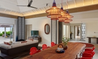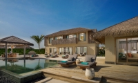 An oasis at the end of the lagoon, this double-storey residence offers a unique private retreat for families with children or multi generational families traveling together. The residence features a private master bedroom and bathroom in a separate building, two guest rooms on second floor with one king bed and two twin beds, ensuite bathrooms, open-plan living space, dining area, a fully equipped kitchen, expansive outdoor deck with open-air dining pavilion and infinity pool.