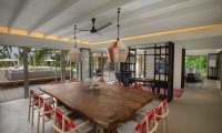 The residence features an elevated and spacious master bedroom and bathroom, two guest rooms with one king bed and two twin beds, ensuite bathrooms, open-plan living space, dining area, a fully-equipped kitchen, an expansive outdoor deck with an open-air dining pavilion, hammock and infinity pool to soak up the sun and breathtaking views.