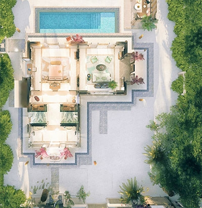 No need to worry about space here. In addition to the three bedrooms, two living rooms and two infinity pools, this 400 sqm area boasts three dressing rooms each with two built-in closets. From terraces perfect for gatherings to romantic balconies; an uninterrupted ocean view renews your joy to be alive. A boat or as well call them a Dhoni will be provided whenever you want to head out to the spa or restaurants.
