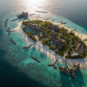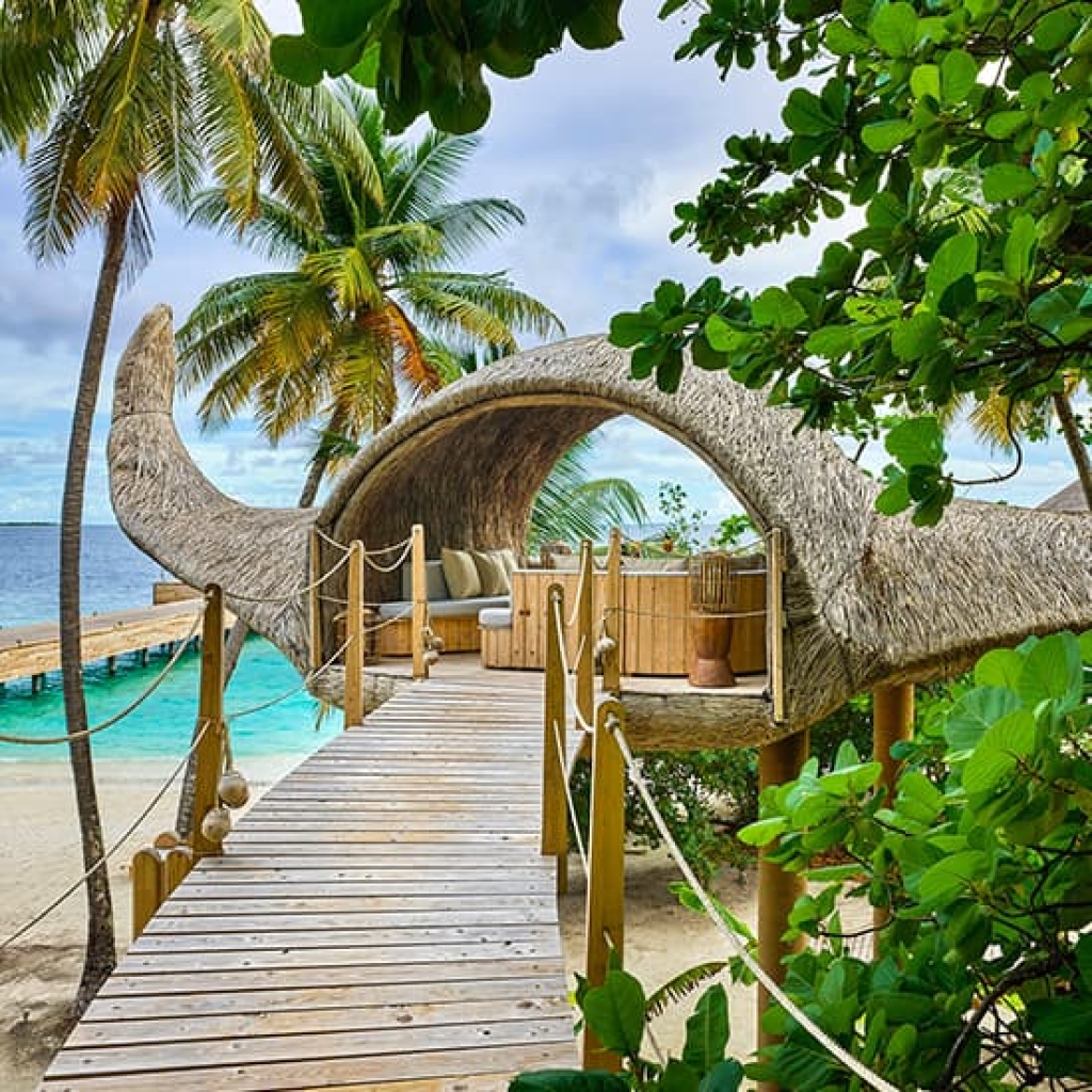 An art immersive luxury island resort, nestled on Muravandhoo Island in Raa Atoll in the northern reaches of the Maldives. Where dreamy ivory sands meet brilliant blue waters, home to coral reefs brimming with life and colour. Raise a toast to sustainable glamour in this magical realm, a constant expression of joie de vivre.
