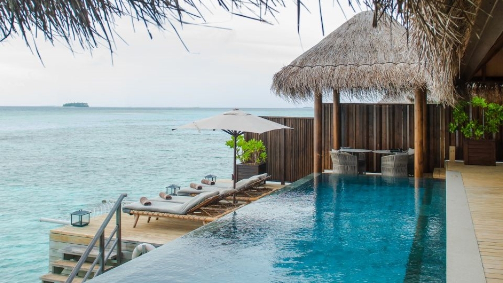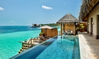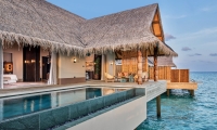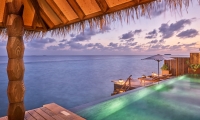 Raise a toast to superb panoramas from your bedroom and sundeck every evening at this spectacular overwater Maldives haven.