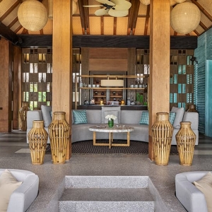 This 500 sqm., four bedroom grand two-story beach villa understands what big families need to relax. With four bedrooms each with their bathroom, it can accommodate eight people without having to sacrifice space or privacy. Perfect for bookworms, a library with handpicked books offers a dreamy reading experience. A separate butler room allows for round the clock service on premise. For all your potential incursions around the island, a buggy and a driver is at your service.