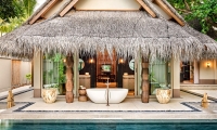 With its beach, garden and ocean views, this lavish 108 sqm one room villa can accommodate up to three people comfortably. Our villa features handpicked accents, a private beach garden, a bathroom with spa amenities and coveted toiletries. A butler and valet service is there to care for all your needs. An infinity pool overlooking the ocean awaits all night owls for an exclusive swim under the stars.