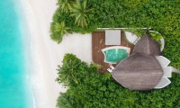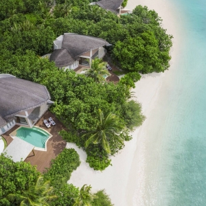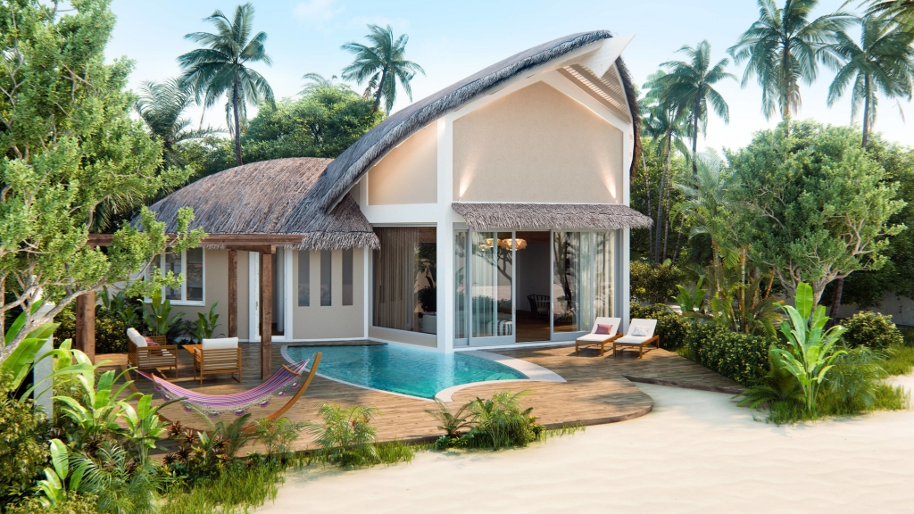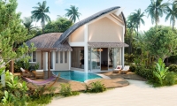 Cozy Beach Pool Villas offering the ultimate in privacy, surrounded by lush tropical vegetation and captivating views of the Maldivian sunrise.