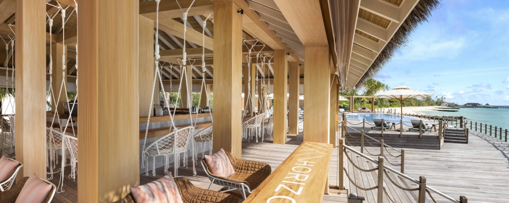 Enjoy a refreshing tropical drink in the swing bar seats of Horizon. With unsurpassed views over the Laccadive Sea, this is the place to soak in a majestic Maldivian sunset and enjoy live entertainment at night.