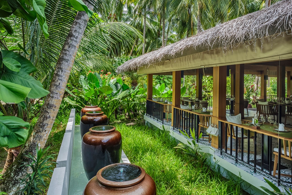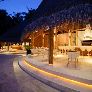 Select high quality meats are cooked to your desires, complemented with traditional barbeque side dishes and matured fine wines. Set right on the beach, with views out to the sea and the infinity pool, this chic restaurant also offers a selection of island grown organic food.