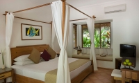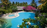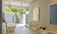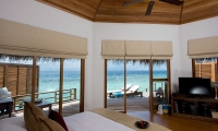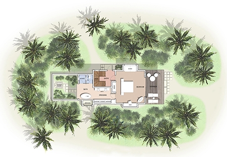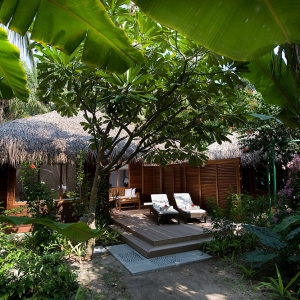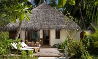 The Beach Villas are individual villas hidden within the abundant vegetation, yet only a few steps away from the beach. These villas face the lagoon side of the island and feature king-sized four-poster beds, wooden decks at the front with daybed and sunloungers. The Beach Villas also include semi-open air bathrooms with outdoor rainfall shower.