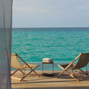 Set in the middle of our vast turquoise lagoon, the Deluxe Water Villa feature a king-sized bed and a daybed. The spacious bathroom offers a freestanding bath, and opens onto an expansive deck with steps down to the azure waters. In addition to the wide range of in-villa amenities, all villas from this category upwards also feature a fuller minibar complete with a separate wine chiller featuring over 30 bottles from around the globe.