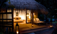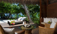 Sited amongst the natural gardens of the island, the wooden Beach Villas with Jacuzzi are dedicated to couples celebrating romance. The bedroom features king-sized four-poster bed and an inviting daybed, whilst the deck outside offers daybed and sunloungers for two. The bathroom is large and open air, and includes a tempting jacuzzi in the corner.