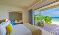 The Deluxe Beach Villas with Jacuzzi are located along the wide beaches in the middle of the island. Facing the turquoise lagoon, these villas boast oversized wooden decks with sunloungers, sun umbrella and daybed. The bedroom features a king-sized four-poster bed and a built-in sunlit daybed. The bathroom has a bath, twin vanities, shower, and a expansive outdoor area with a rainfall shower, sala bed for two, and an inviting jacuzzi on an elevated deck. The added luxury of an espresso machine with complimentary refill is included from this villa category upwards.