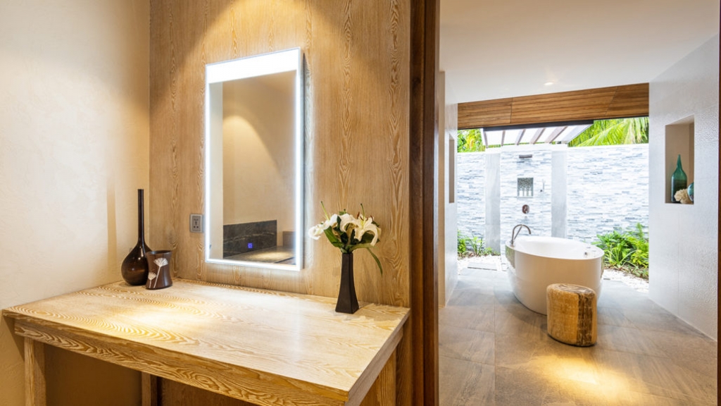 The Beach Suite at Lily Beach Resort & Spa provides a contemporary interior design blended with natural materials, Maldivian decor and artistic elements.