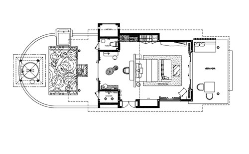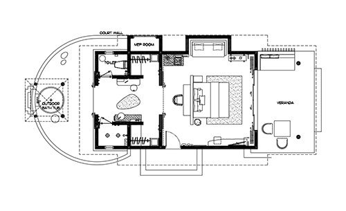 Light sand and ochre tones reflect the beautiful island setting beyond the terrace, while subtle décor echoes the ebb and flow of the ocean. All guestrooms enjoy en suite outdoor bathtub where the open sky, bright hibiscus and beautiful banana trees provide privacy in a natural setting.