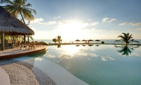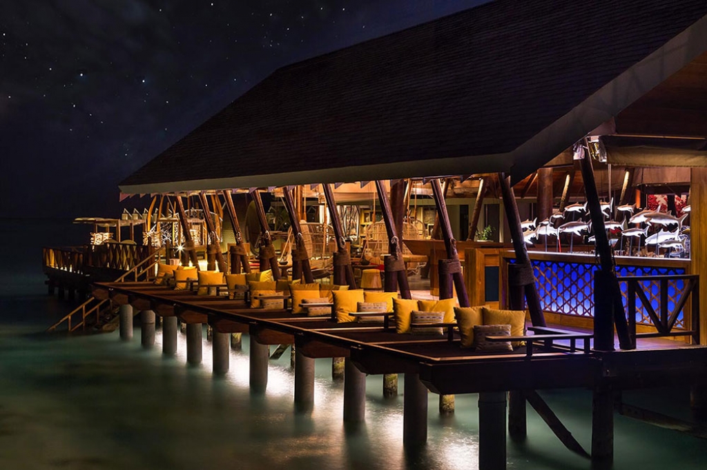 Here, near the crystal-clear swimming pool that extends out to sea, with shimmering views of the lagoon on three sides, pause at the Veli Pool Bar next to the water, and enjoy a refreshing drink as you soak up those incredible watery views.